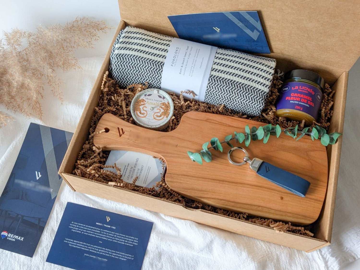 Gifts, featuring high-quality local products, can convey the realtor's values such as commitment to quality and local community.